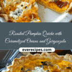 Roasted Pumpkin Quiche with Caramelized Onions and Gorgonzola is a savory, autumn-inspired tart featuring roasted pumpkin, sweet onions, and bold gorgonzola in a creamy egg custard. It’s perfect for brunch, lunch, or cozy dinners.