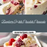 An elegant white chocolate raspberry cheesecake with a creamy white chocolate filling, rich Oreo crust, and a bright raspberry swirl, perfect for holidays and special occasions.